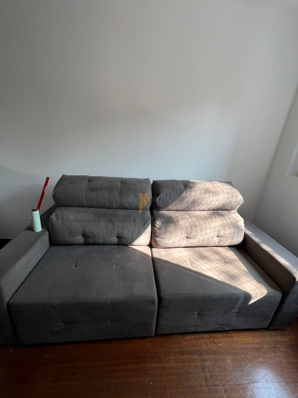 Semi-mobiliado (1 cama, sofá (2,50m * 1,80m), mesa de jantar com canto alemão + 2 cadeiras, micro-ondas e geladeira.
